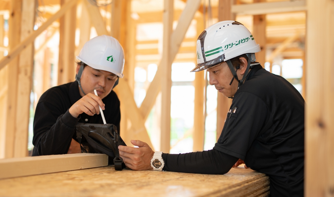 新築工事の現場毎に2回の安全パトロールを実施して、是正対応を行っています。一人一人が安全意識を持ち、現場の安全性の向上に努めております。